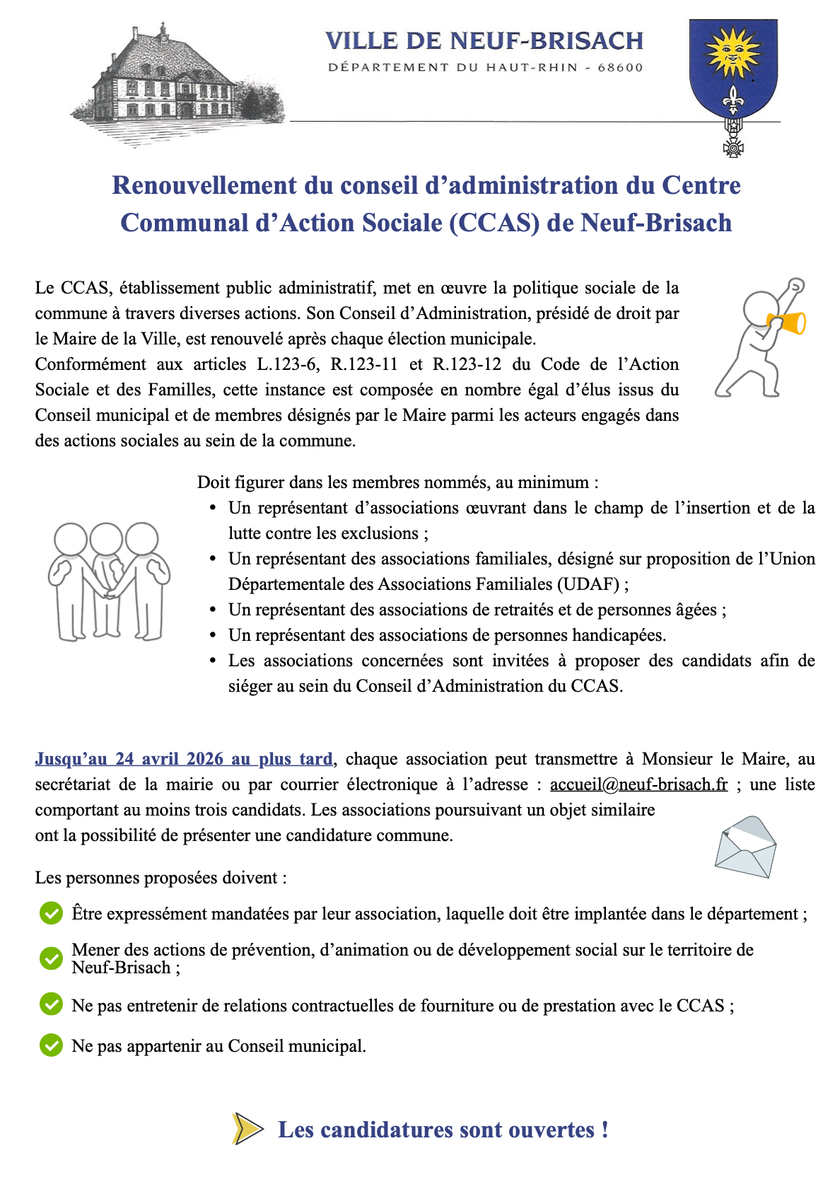 Renouvellement du conseil d’administration du Centre Communal d’Action Sociale (CCAS) de Neuf-Brisach